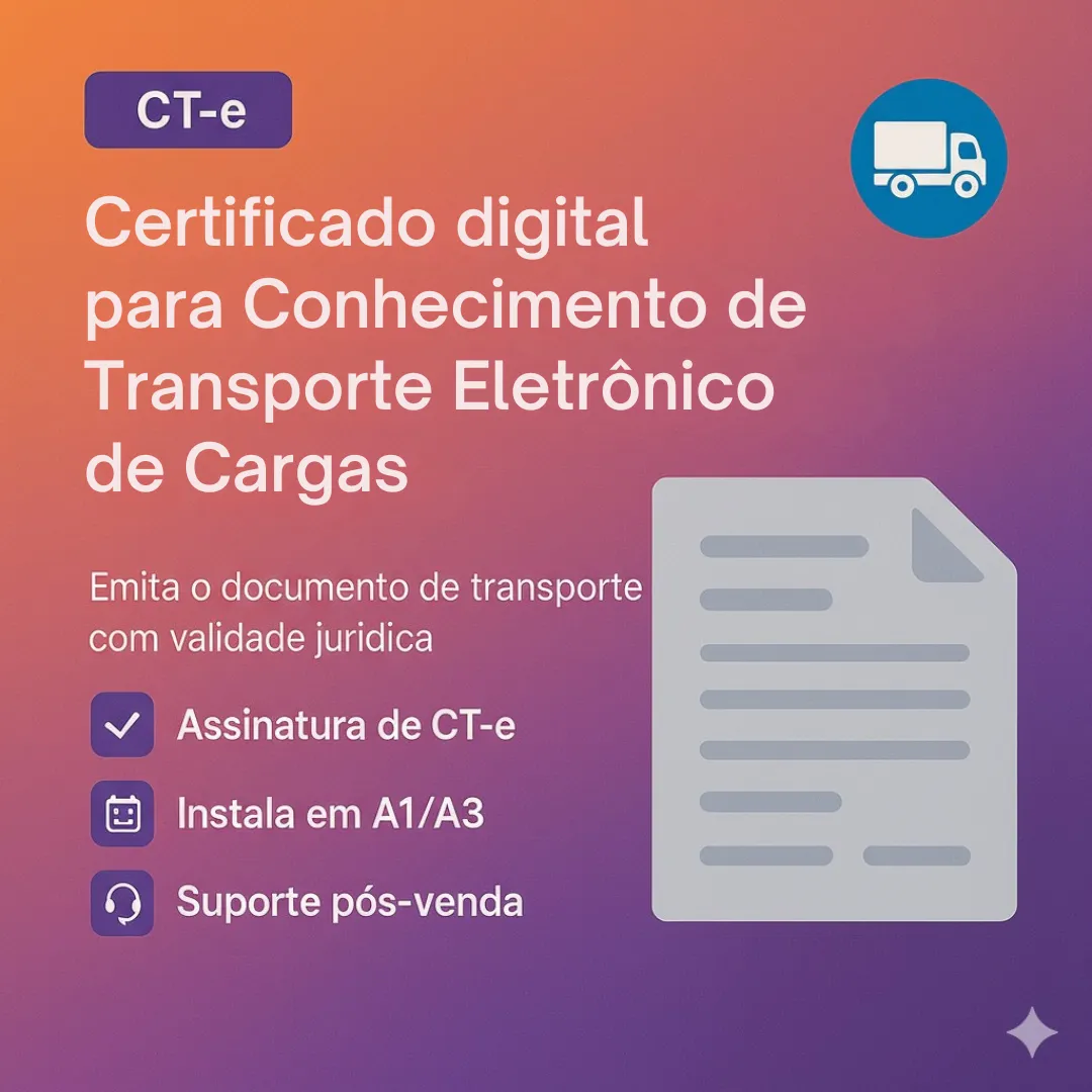 O certificado digital CT-e atribui validade jurídica e garante a autenticidade do documento de Conhecimento de Transporte Eletrônico de Cargas.