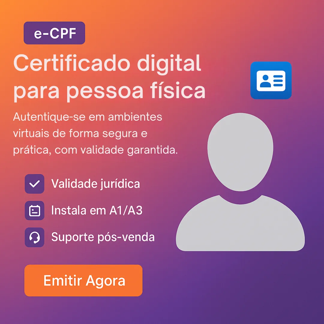 e-CPF: é usado por pessoas físicas para assinar documentos, acessar serviços da Receita Federal e outras plataformas com validade jurídica.