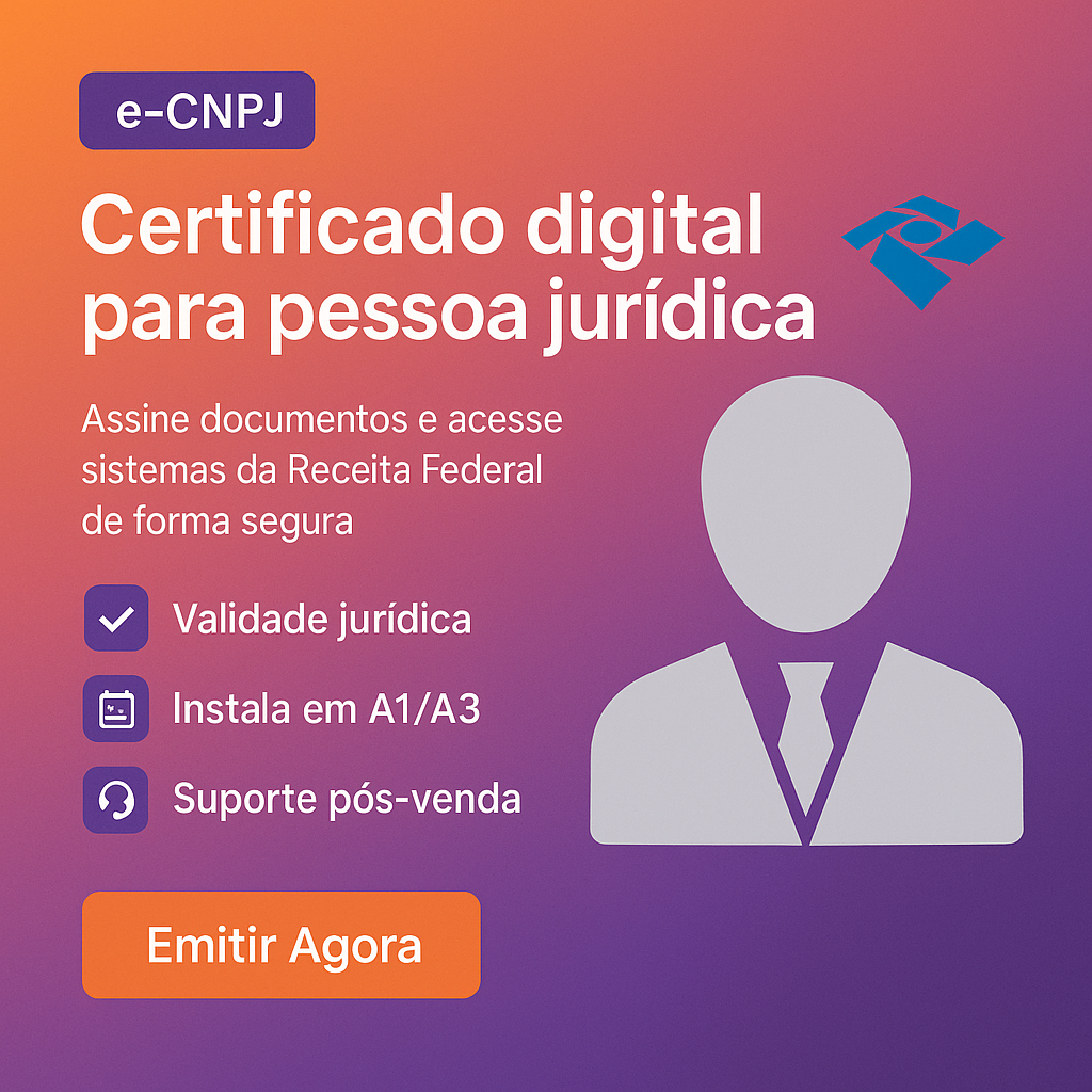 e-CNPJ: é utilizado por empresas para assinar notas fiscais eletrônicas e cumprir obrigações fiscais e legais.